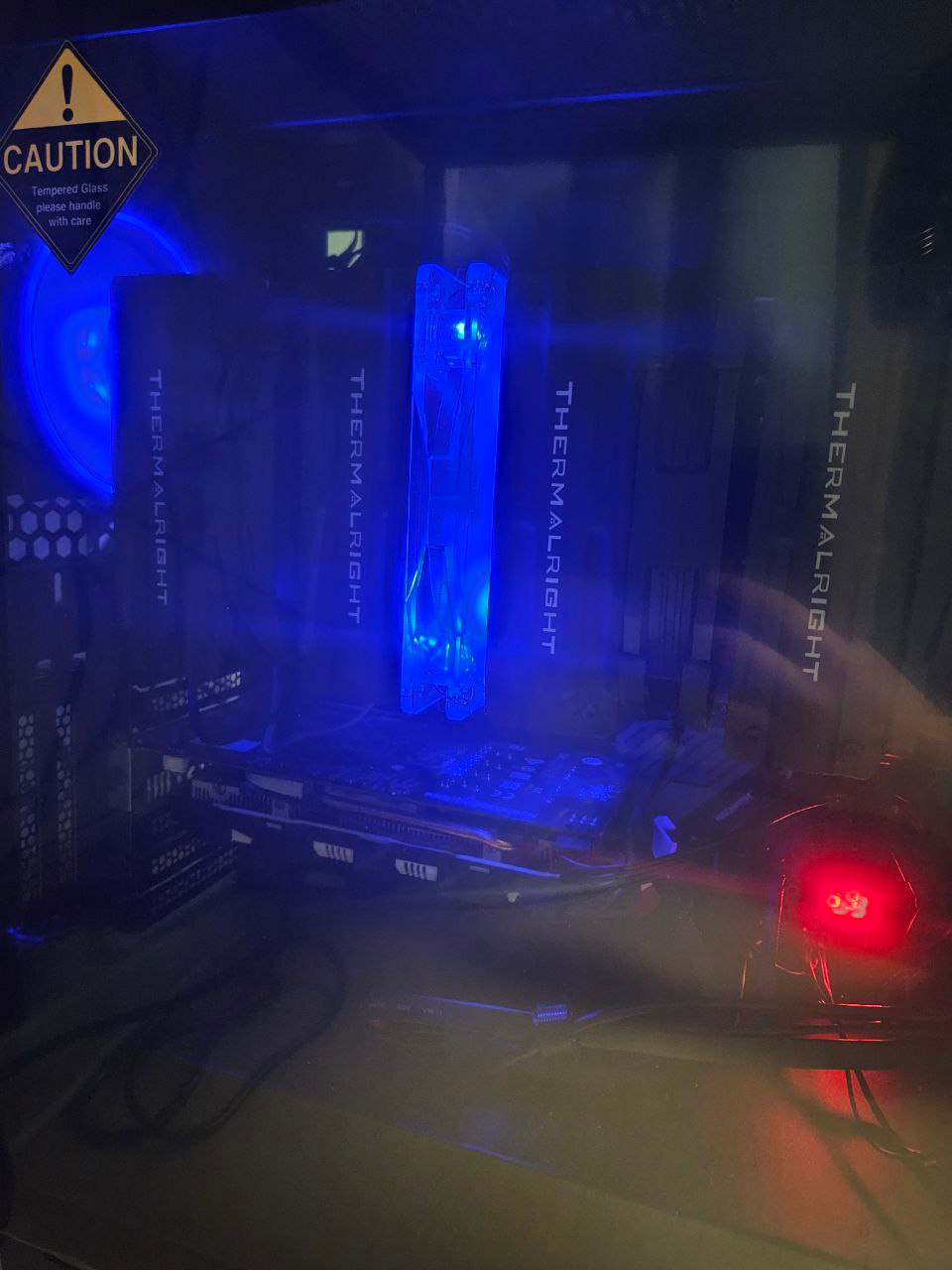 쿨러 사이에 낀 파랗게 빛나는 쿨링팬은 위에 언급했던 순정 쿨링팬이 쿨러 사이에 사이즈가 안맞아서 달아놓은 팬이다